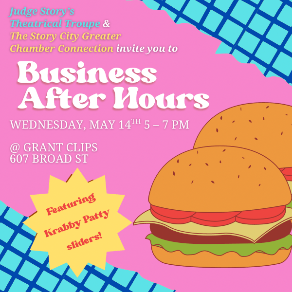Craving a Krabby Patty? Join us and the Story City Greater Chamber Connection, on Wednesday, May 14, from 5–7pm for Business After Hours at Grant Clips, 607 Broad St, Story City! We’ll have Krabby Patty sliders and other fun food and drinks. Be there or be square(pants)!