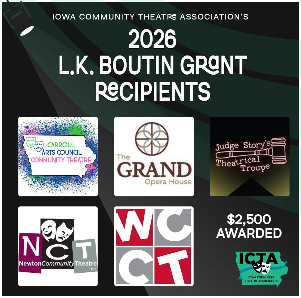 Thank you so much to the Iowa Community Theatre Association for including JSTT in their L.K. Boutin Grant! With this award, we are working toward a new accessibility ramp to help us include everyone in our productions!
