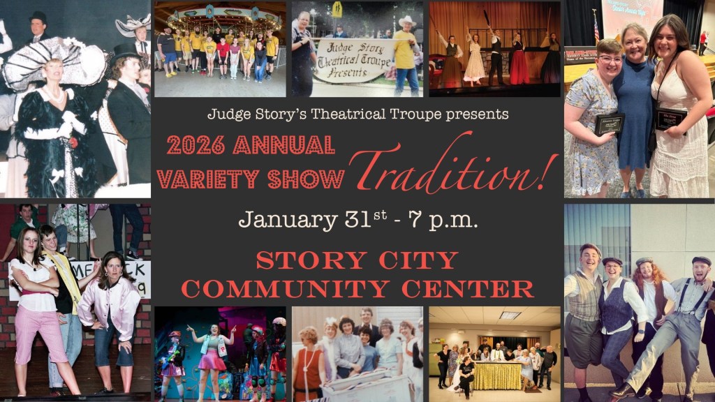 Want to help us celebrate over 40 years of JSTT history? Join us at the Story City Community Center on January 31st, at 7:00 p.m., for our 2026 Variety Show, Tradition, featuring performances from our Scandinavian Days musicals from the 80’s, 90’s, 2000’s, and today!